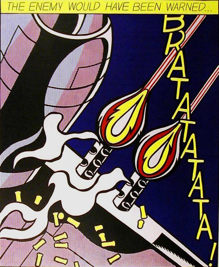 Lichtenstein grew up under no specific artistic influence -neither at home nor at school. But at the age of 14 he attended a painting class at Parson's School of Design every Saturday morning. From 1940 to 1943 he studied in New York at the Art Students' League. Then he was drafted to the US Army and served in Europe during War II. Back from the army, Lichtenstein studied at the Ohio State University from 1946 and received his M.A. in 1949. Like Andy Warhol he worked in the commercial graphic business for a while - making designs and decorating shop windows. From 1957 on, he taught at different universities.