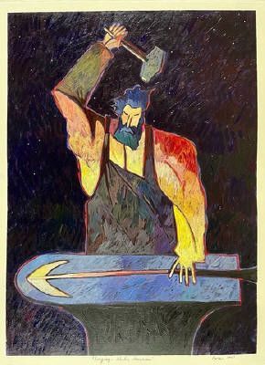 His other objective in re-working so much of our past history into his work is his deep desire to "update" with bright colors, abstract forms and a contemporary style of painting of figures and events from a dim and often misunderstood past.