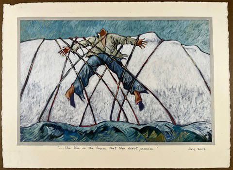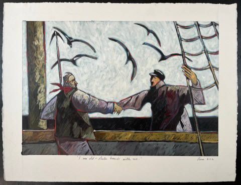 We are happy to be able to hold over several paintings by artist, writer and historian, Thom Ross as he interprets the writing of Herman Melville's novel, Moby-Dick.